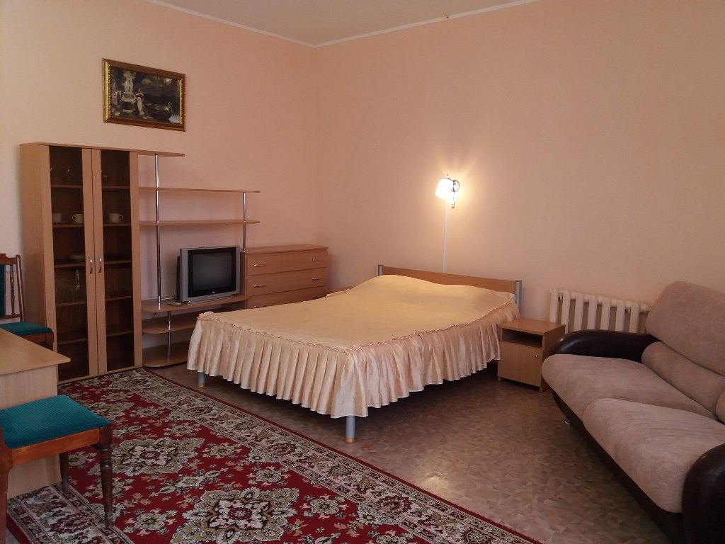 №131,231 – площадь 33,1 м2, двуспальная кровать, журнальный столик, ТВ, холодильник, стенка для посуды, посуда, чайник, диван, комод, две тумбы, шкаф для одежды, совмещенный санузел.