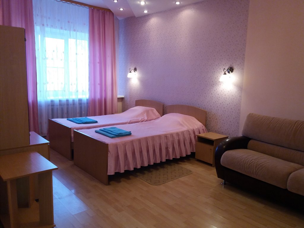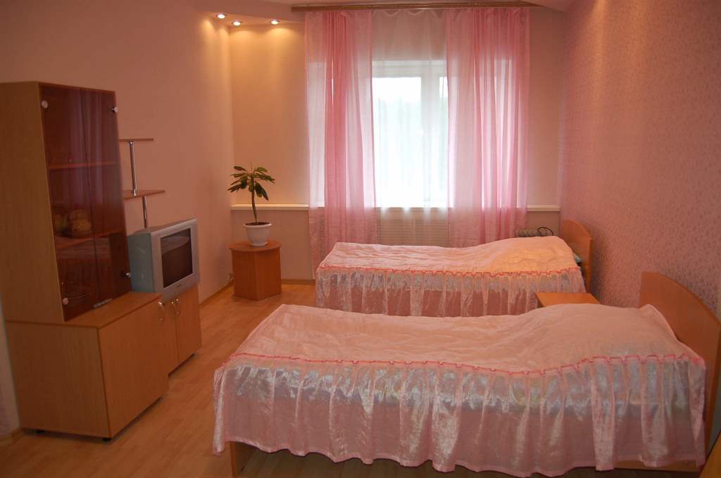 № 136 - площадь 44,3 м2, две односпальные кровати, журнальный столик, ТВ, холодильник, стенка для посуды, посуда, чайник, диван, кресло, две тумбы, два шкафа для одежды, совмещенный санузел.
