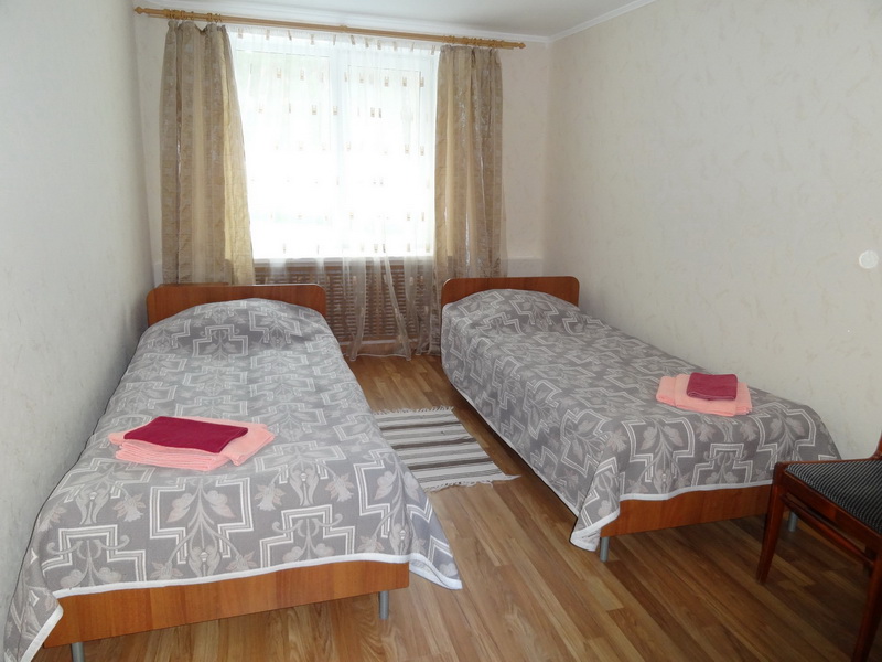 Площадь номера 12кв.м., однокомнатный номер с двумя односпальными кроватями, тумбы,телевизор, посуда, шкаф для билья. Душ с поддоном и сан. узел совмещенный.