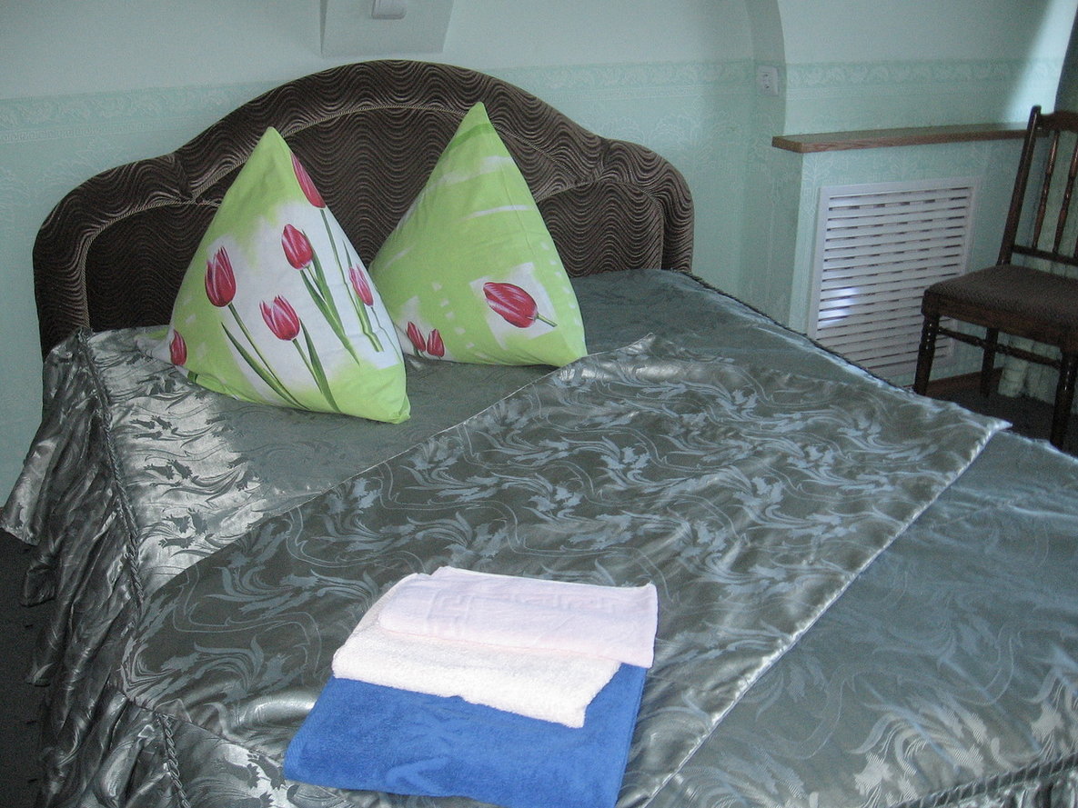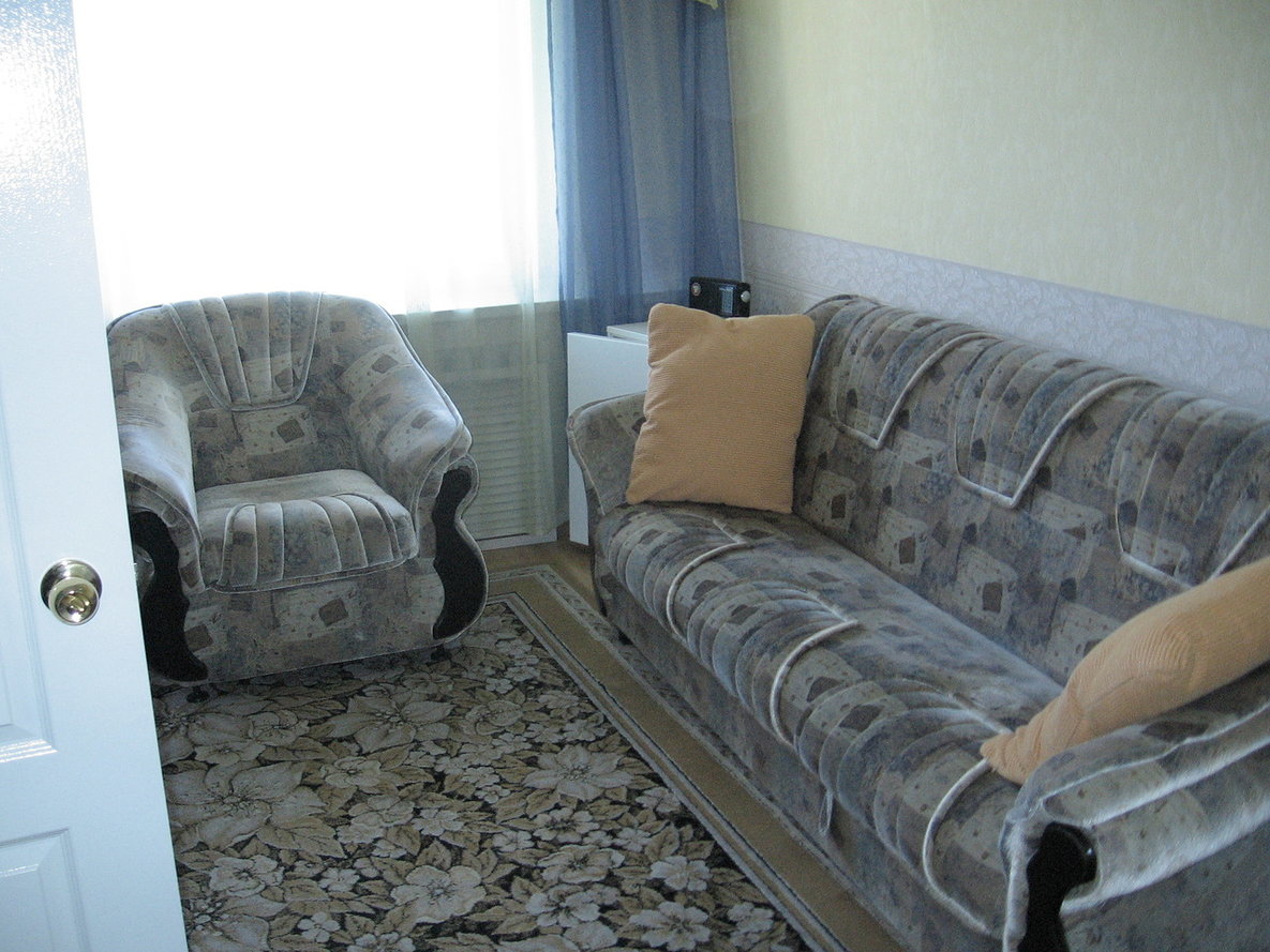 2-х спальная кровать,  шкаф для одежды, диван, кресло, ночной столик, вешалка для одежды с полкой для обуви, посуда; телевизор, холодильник, фен; санузел, джакузи; лоджия; пастельное бельё, халат, тапочки, туалетные принадлежности (мыло, гель). Уборка номера производится ежедневно, замена пастельного белья каждый день.