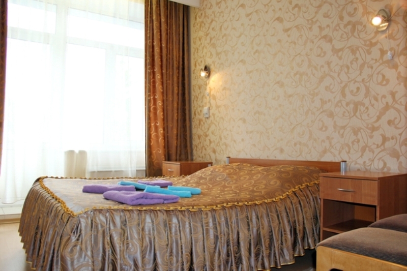 2-х спальная кровать, раскладывающийся мини-диван (2 чел.), прикроватные тумбочки, шкаф для одежды и вещей, TV, холодильник, совмещенный санузел с душевой кабиной, балкон.