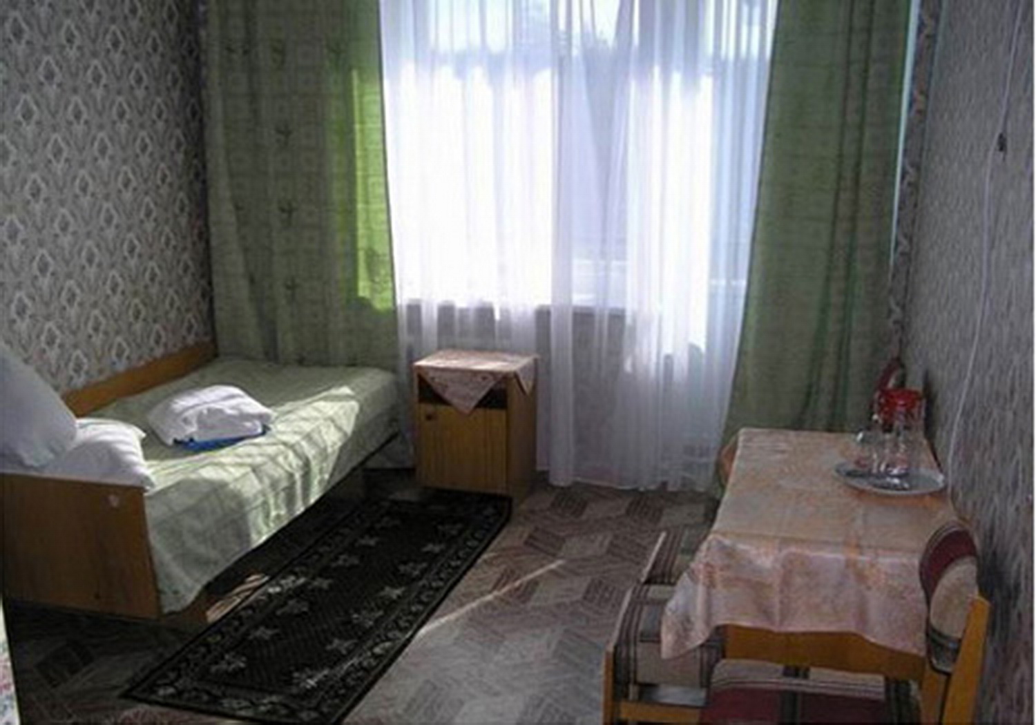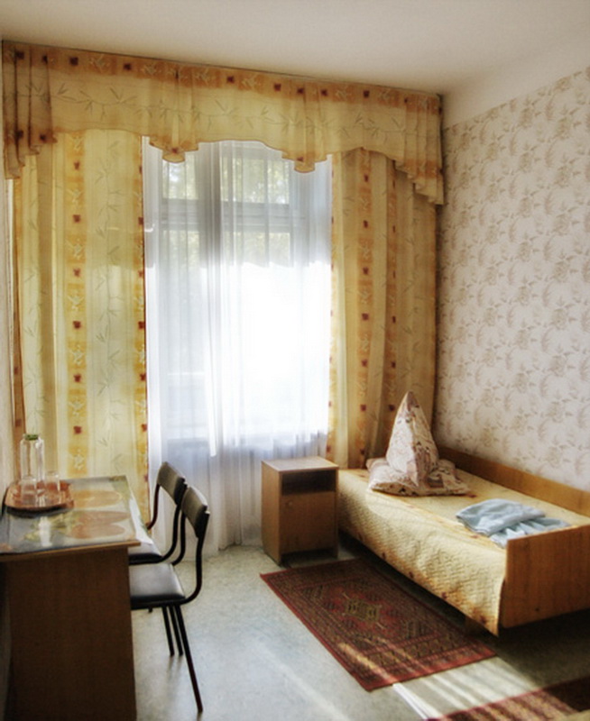2-х местный стандартный номер: две 1-спальные кровати, тумбы, стол, 2 стула, шкаф для белья, радио. Душ с поддоном и санузел совмещен, балкон.