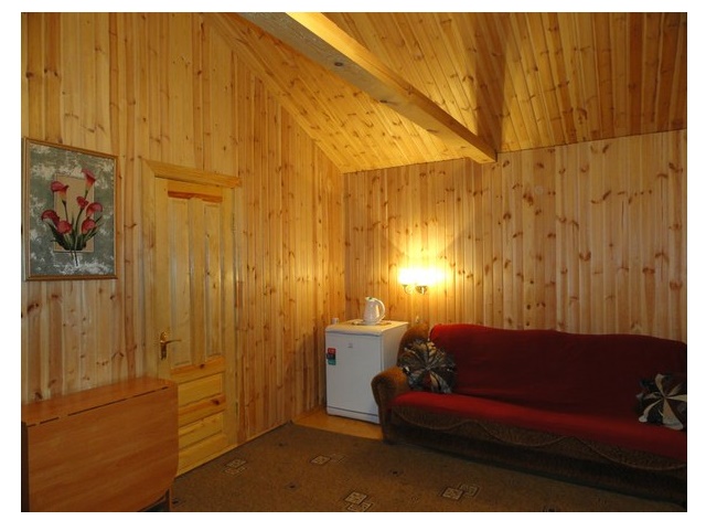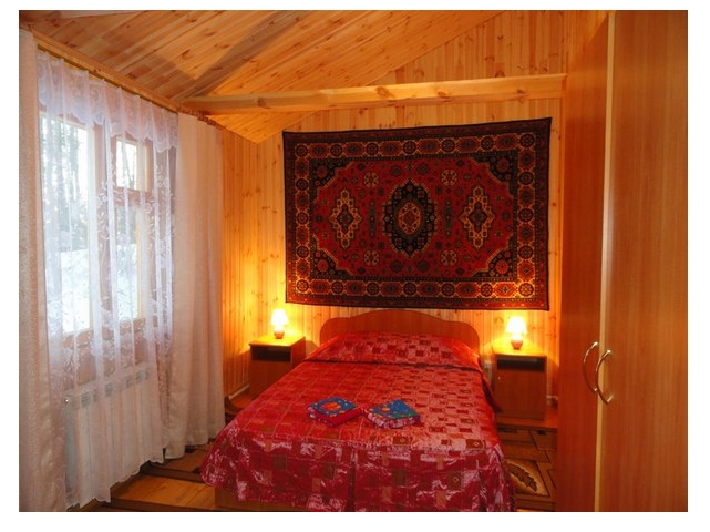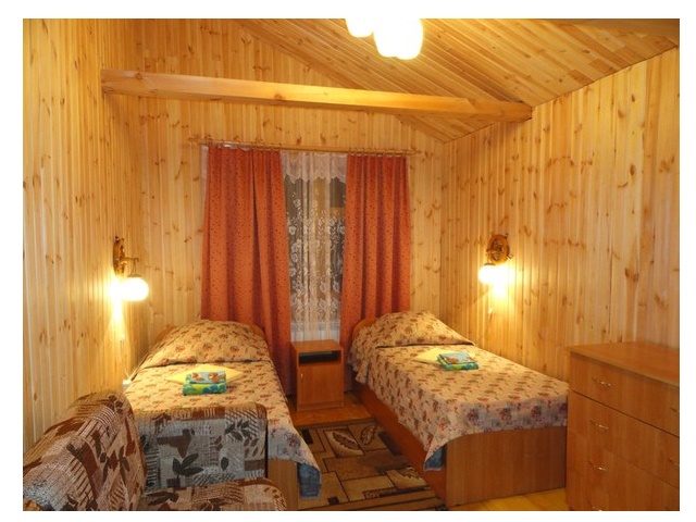 2 спальни, 4 места: двухместная и две одноместные кровати. Возможны 2 дополнительных места в гостиной. Условия Деревянный дом. Гостиная, 2 спальни, веранда, ТВ, душ и санузел на дом, холодильник. Мангал.Нахождение домашних животных в домах и корпусах запрещено.