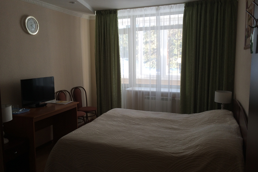 Площадь номеров: 14-20 м2 Размеры кровати: 160*190, 140*190 или 2 кровати 90*200. В номере имеется: одна большая или две раздельные кровати, две прикроватные тумбочки со светильниками, зеркало, сейф, универсальный письменный стол, два стула, телевизор, телефон, ванная комната, махровые полотенца, фен, набор косметических аксессуаров, платяной шкаф.